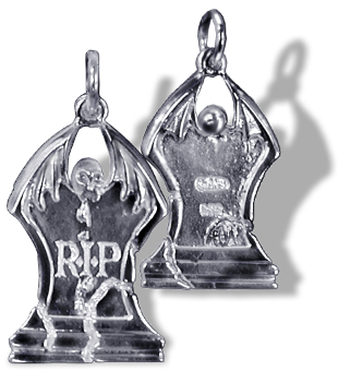 Halloween Tombstone with blackened antique finish. This accentuates the the tiny detail of the bat with blood dripping from his fangs. The cracks in the stone with the skeleton fingers clawing through. The skull. A little bit more drama.Available not antiqued.